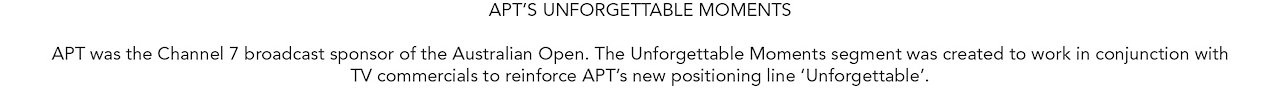 The solution was a positioning that wrapped up APT’s unique offering in a single word — ‘Unforgettable’.